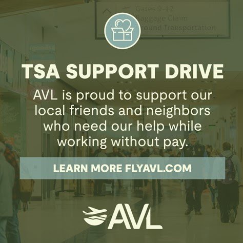 The Transportation Security Administration (TSA) is part of the Department of Homeland Security, and its officers are currently working without pay during the partial federal government shutdown. At Asheville Regional Airport (AVL), approximately 96 TSA team members, friends and neighbors in our region are working without pay to keep air travel safe. The airport has implemented internal efforts to support local TSA team members and is now organizing a support drive so the community can also support.