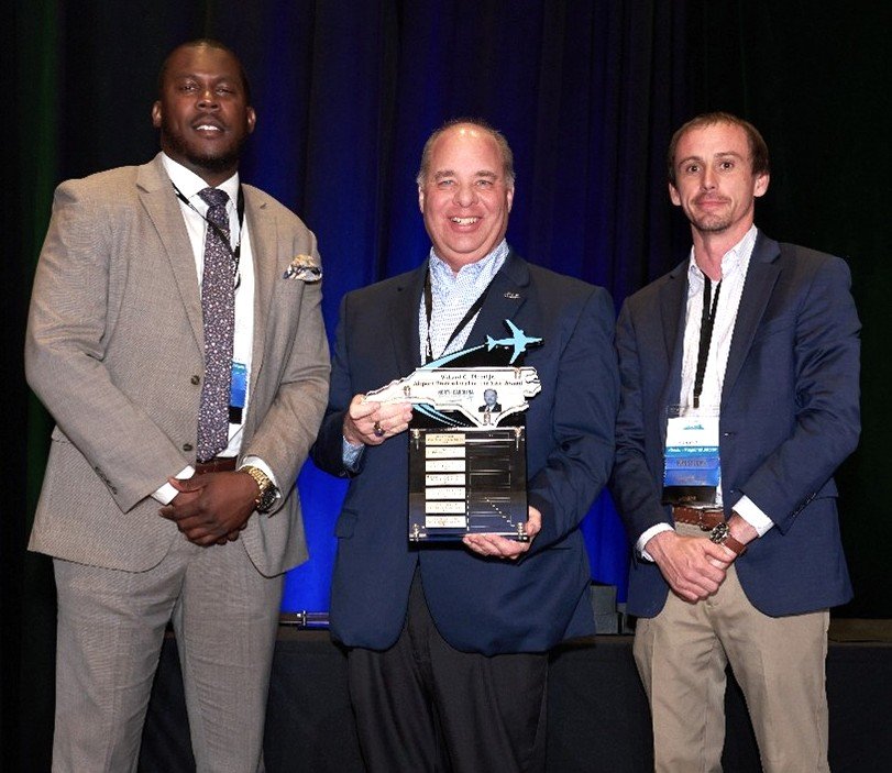 The recipient of the Willard G. Plentl, Jr. – Airport Professional of the Year Award, Jack Christine, Chief Infrastructure Manager at the Charlott Douglas International Airport (CLT) was announced via an outstanding video presentation. His 30-year career started as a planning assistant in the City’s Aviation Department. He now manages the Planning, Design, Construction and Facilities Maintenance Division, working to improve the 6000 acre CLT campus.