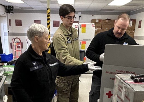 According to Kingston, wing members assist by verifying the temperature of incoming blood products to ensure they meet required standards, documenting and labeling shipments, and preparing them for cold storage and transport.
