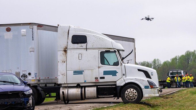 Crash Response: Drone footage can convey crash severity, potential hazards, and impact to traffic immediately following an incident. An overhead view of the crash can inform crews of the quickest route to the scene, where to block roadways, and where to divert traffic to safely navigate around the crash.