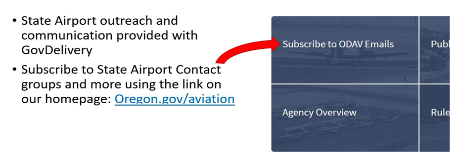 Project specific details will be sent as soon as more information is available. To make sure you’ll receive the latest on these projects and other state airport information, be sure to subscribe to each state airport contact group that you’re interested in!