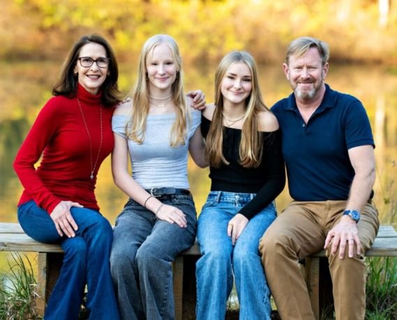 Shelly deZevallos with her twin daughters and her husband, Chris deZevallos. The family resides in Houston.
